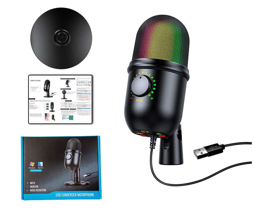 USB Condenser Microphone Noise Reduction Luminous RGB